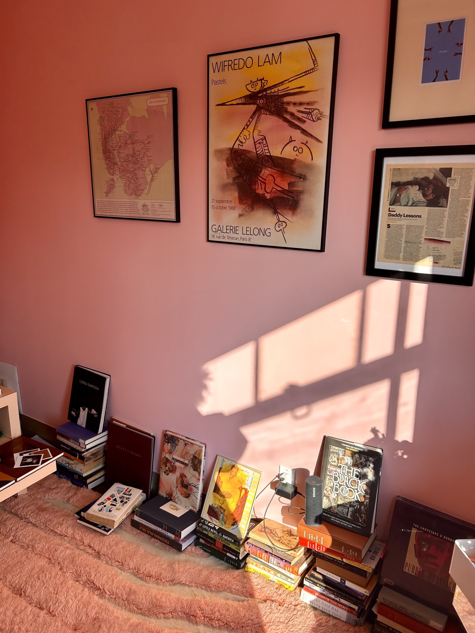 Sasha Bonét: "I've never been more creative than when I rented a tiny room (away from my teenager) in a struggling office building in Manhattan. I painted it an awful pink and called it the Writer's Womb. I hung a pink City of Women 2.0 map. I made an altar board with photos of Baldwin, Morrison, and many women from my lineage. And every morning while writing The Waterbearers, I would sit with them and ask them to show me the way, ask them for courage, and thank them for the opportunity to serve. It was a room of my own, but I wasn't there alone."